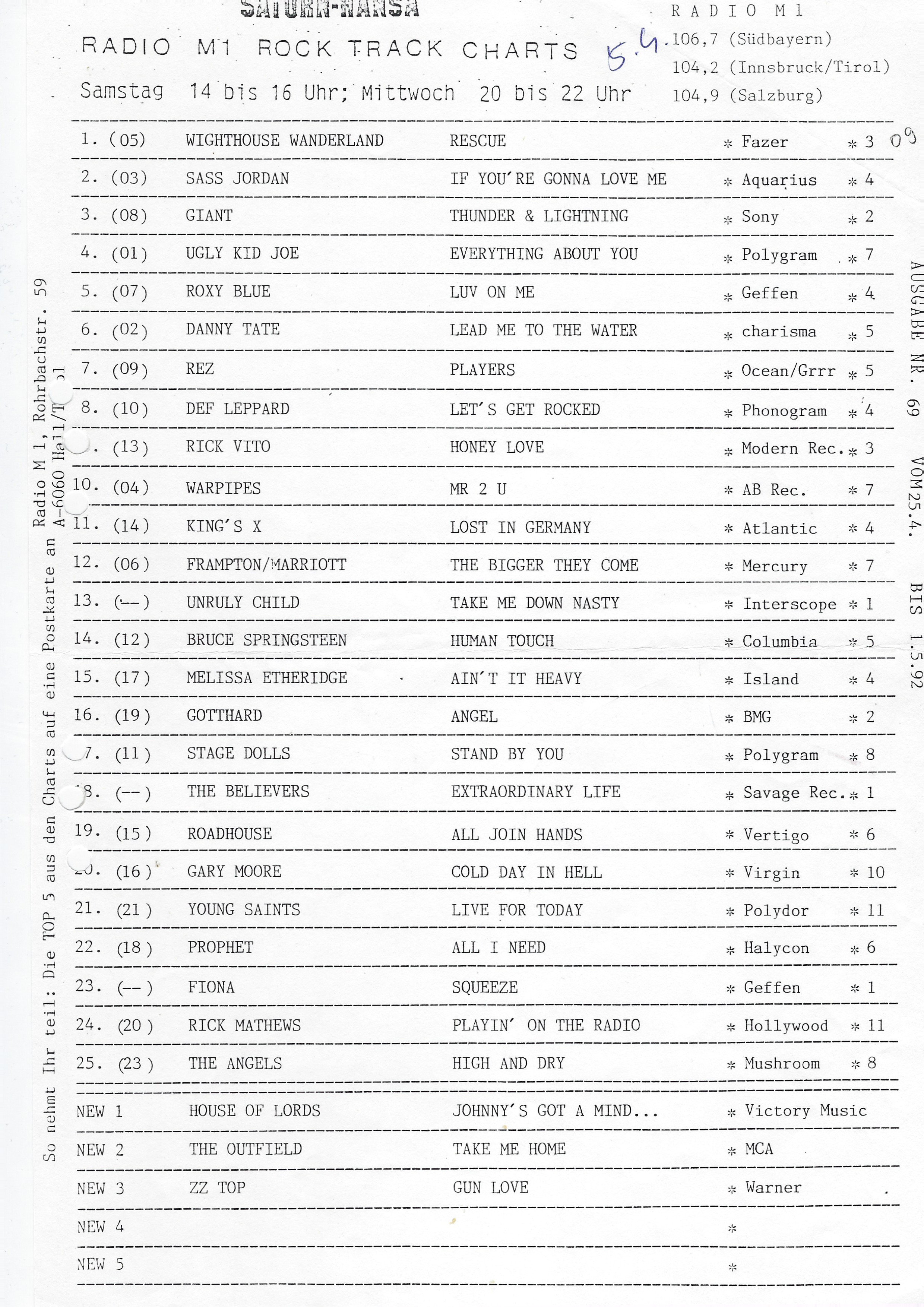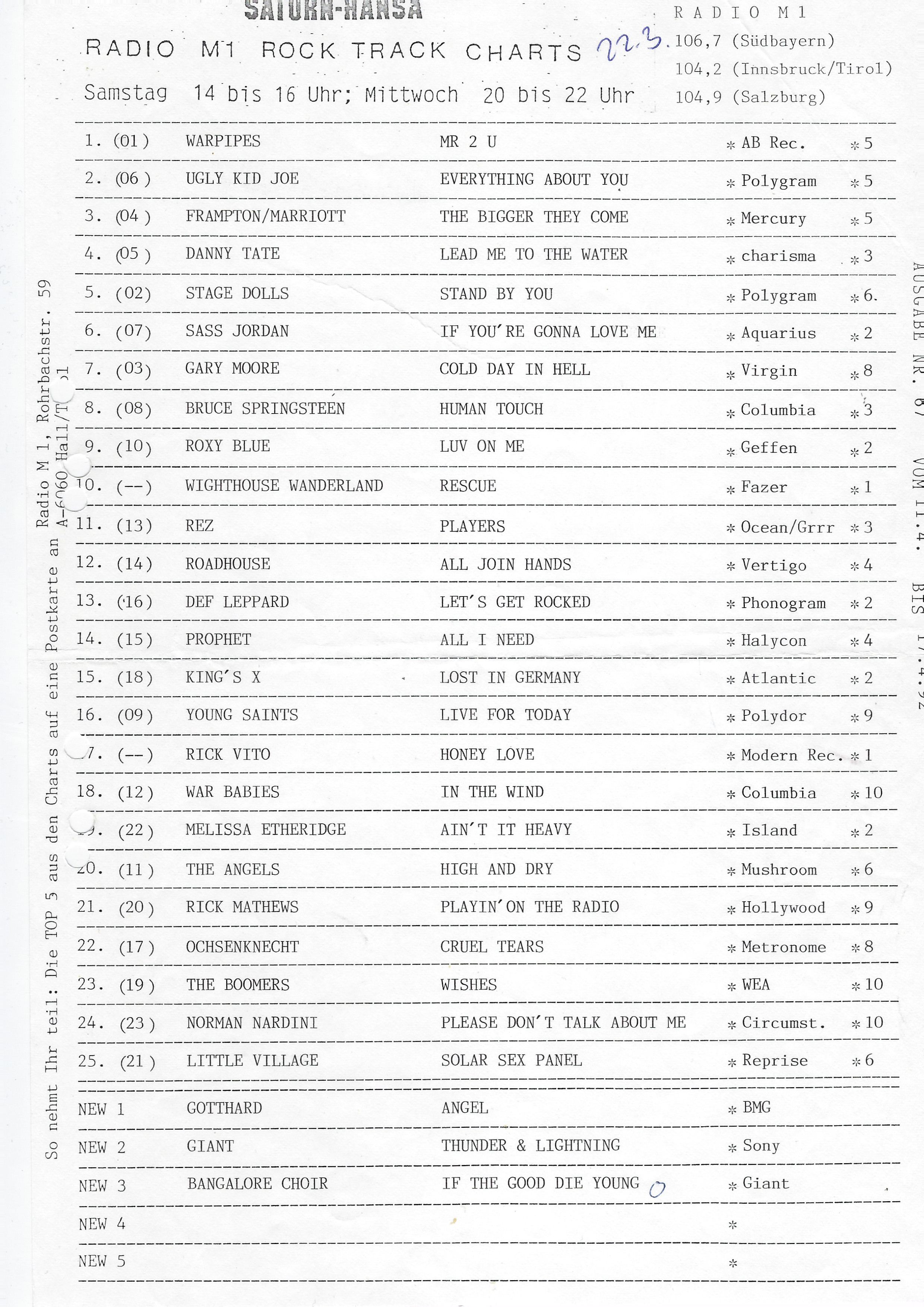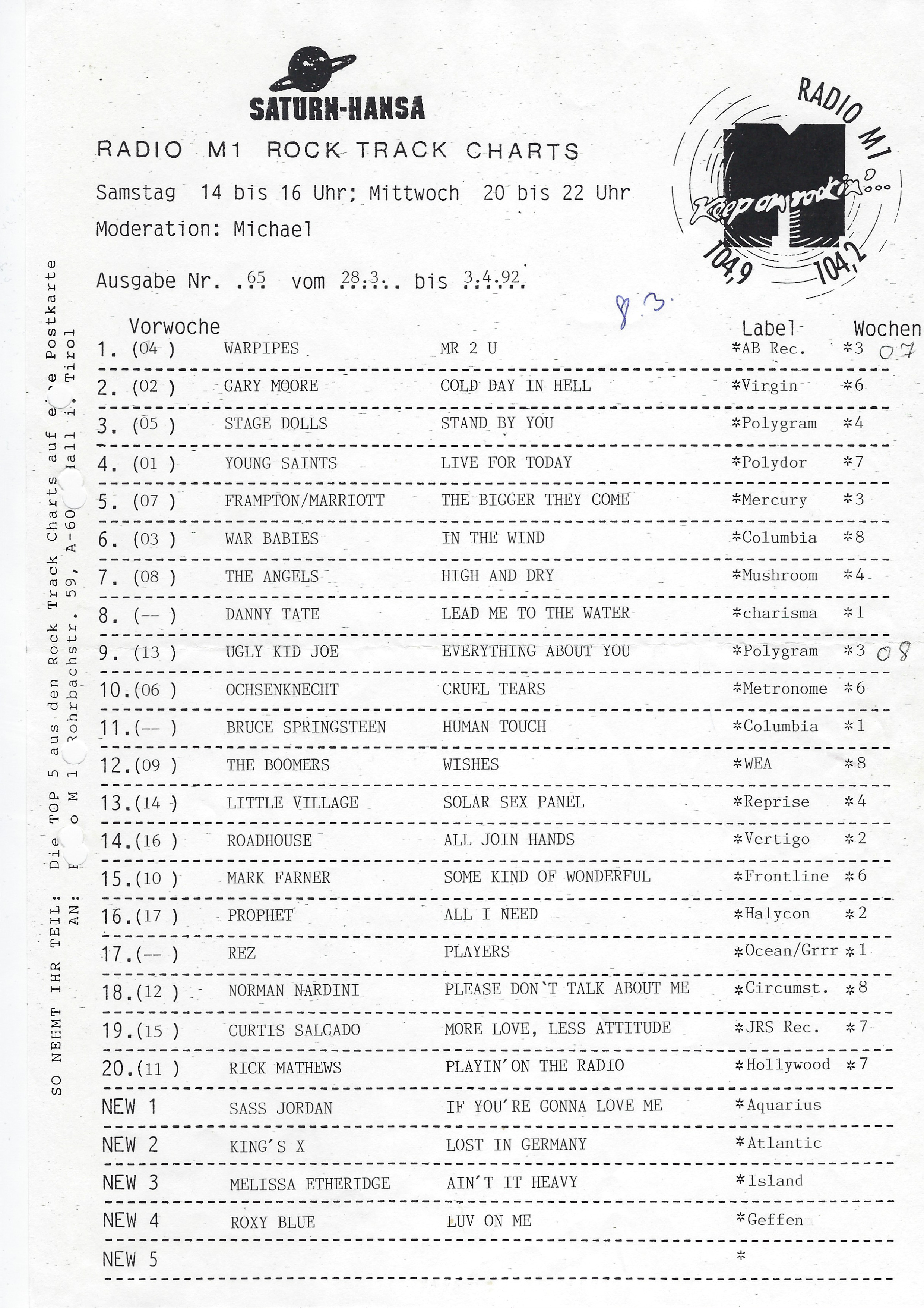 Keine Charts am 27.04., 04.05. & 11.05.