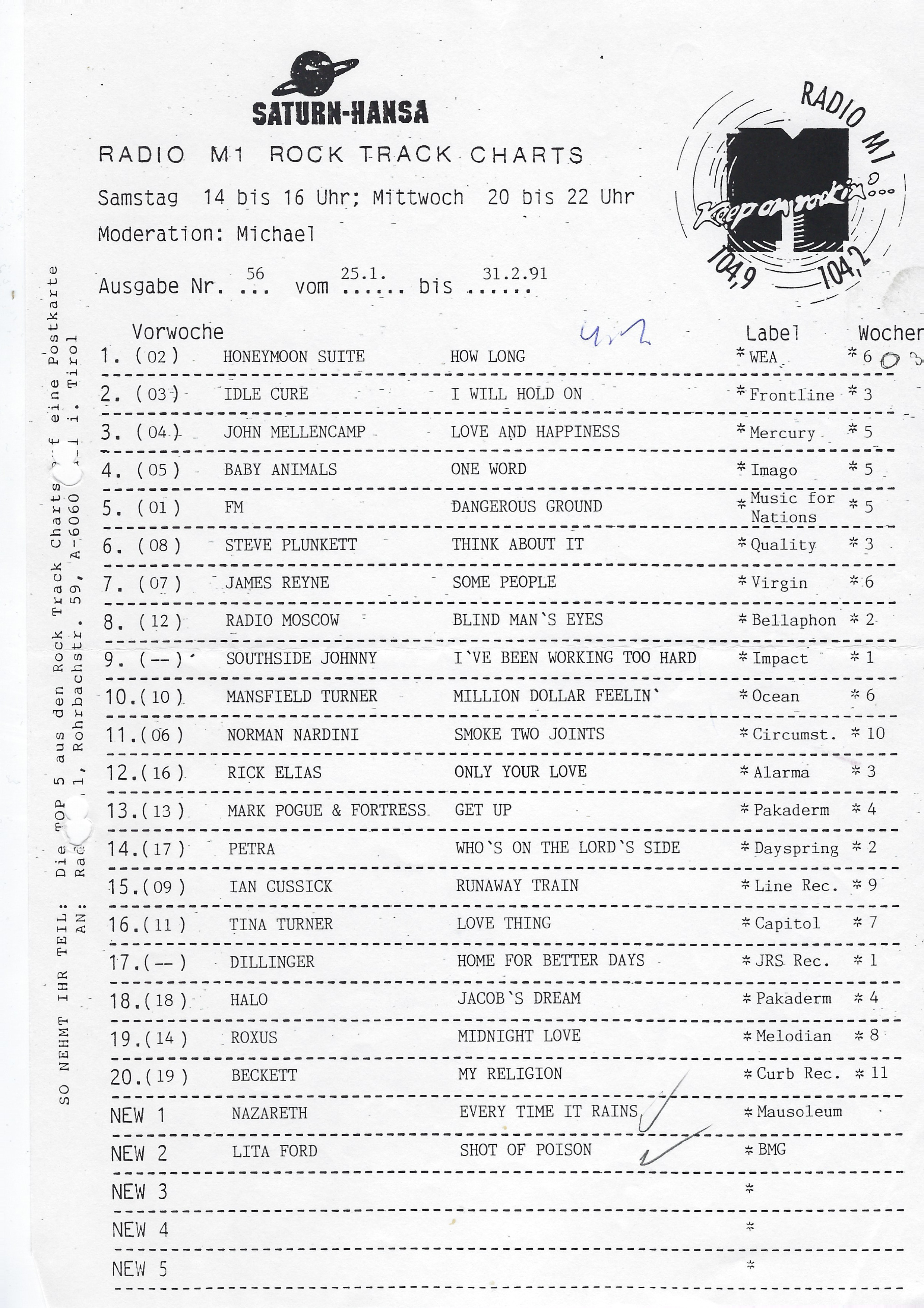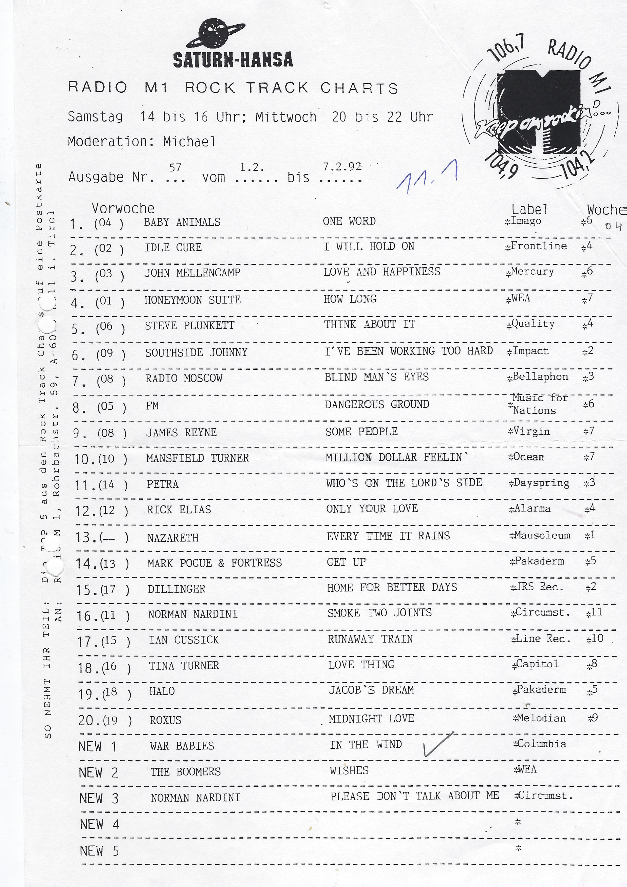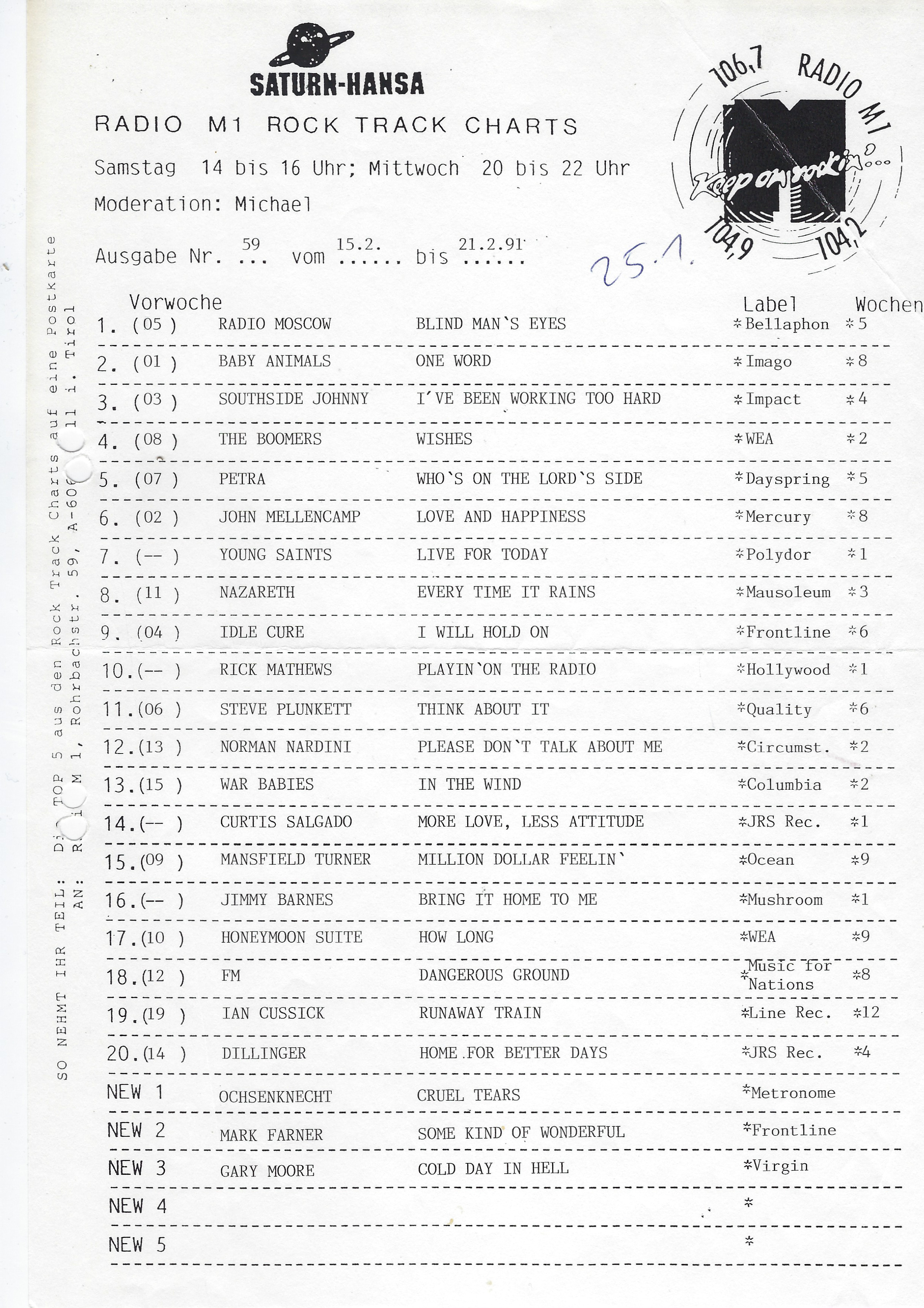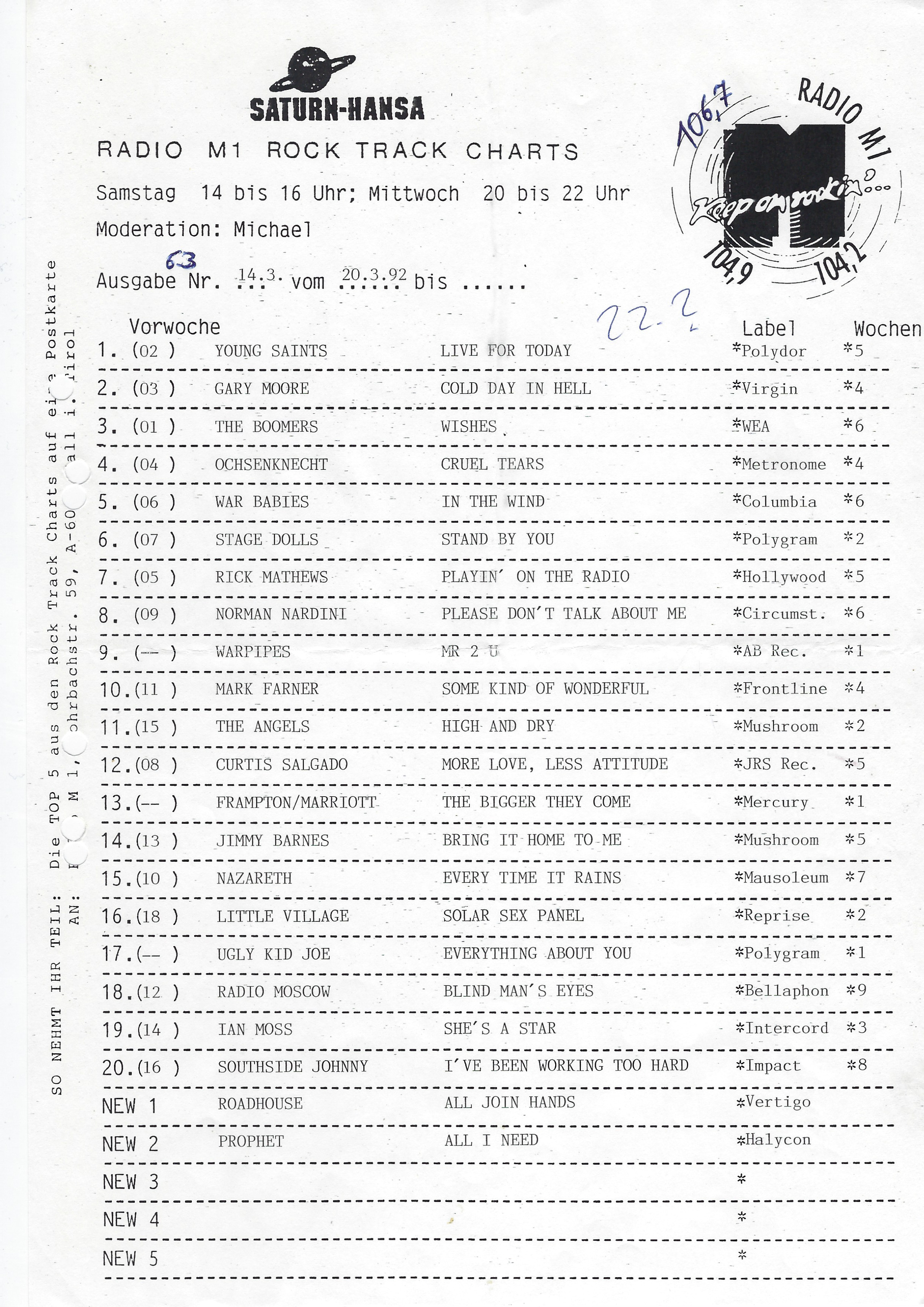 Keine Charts am 27.04., 04.05. & 11.05.
